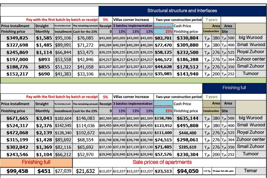 Please specify your wish and your budget to one of our representatives. We will work with you to choose the most suitable unit for the price and with the method of payment suitable for you according to the most modern financing flexible programs. These prices are offered for a limited period and are subject to change at any time without notice prior to reservation and contract signing.